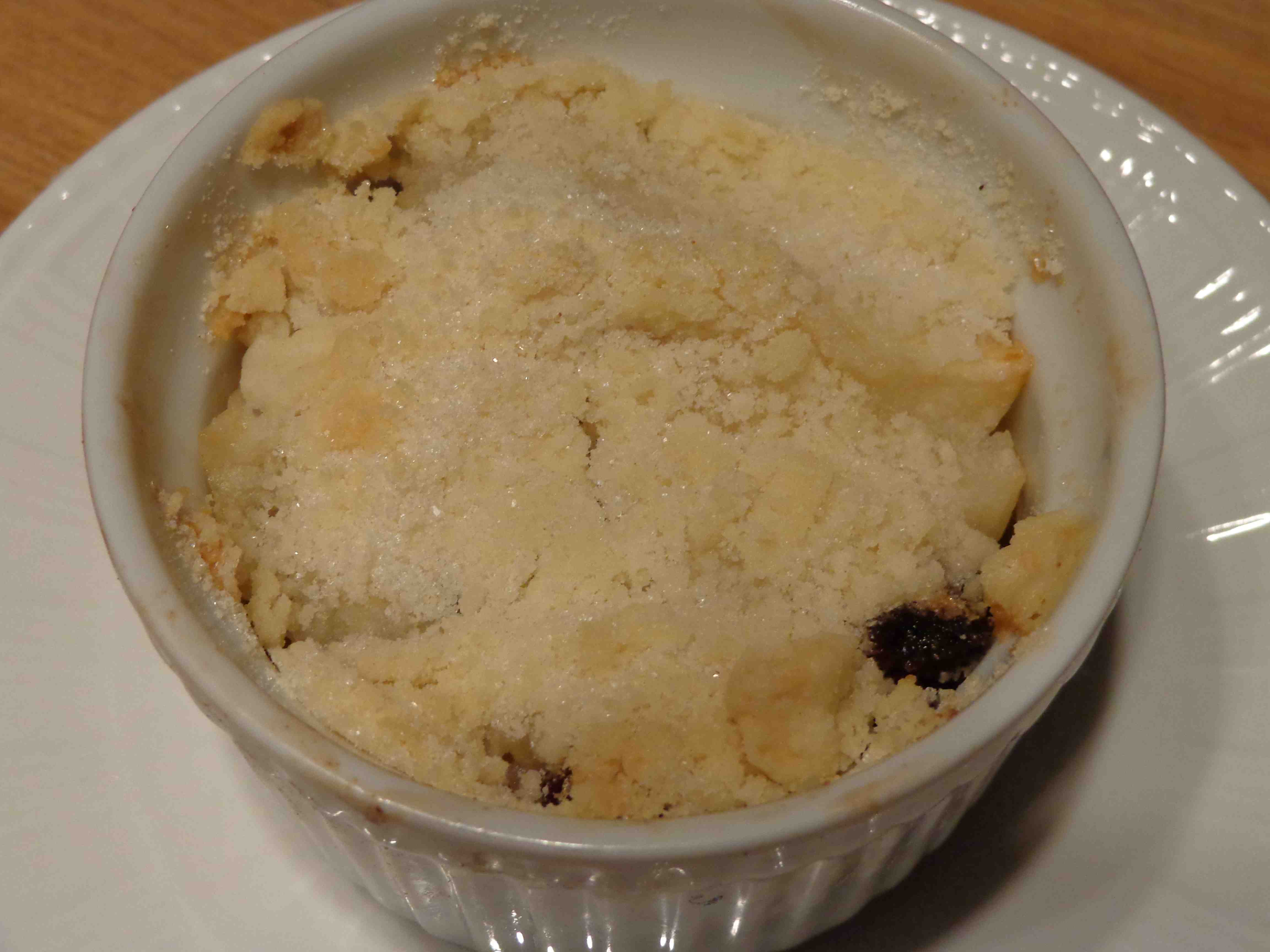 We’re probably going to have to eat at least one – maybe two – meatless evening meals per week, so I tried to ease ourselves gradually into it this evening with baked potatoes, with a bacon and cheese topping, and carrots on the side. For pudding, I made individual apple crumbles, using one (large) apple and half the crumble mix. I was still left with 1/2 apple and plenty of topping, so guess what we’re having for pudding tomorrow!