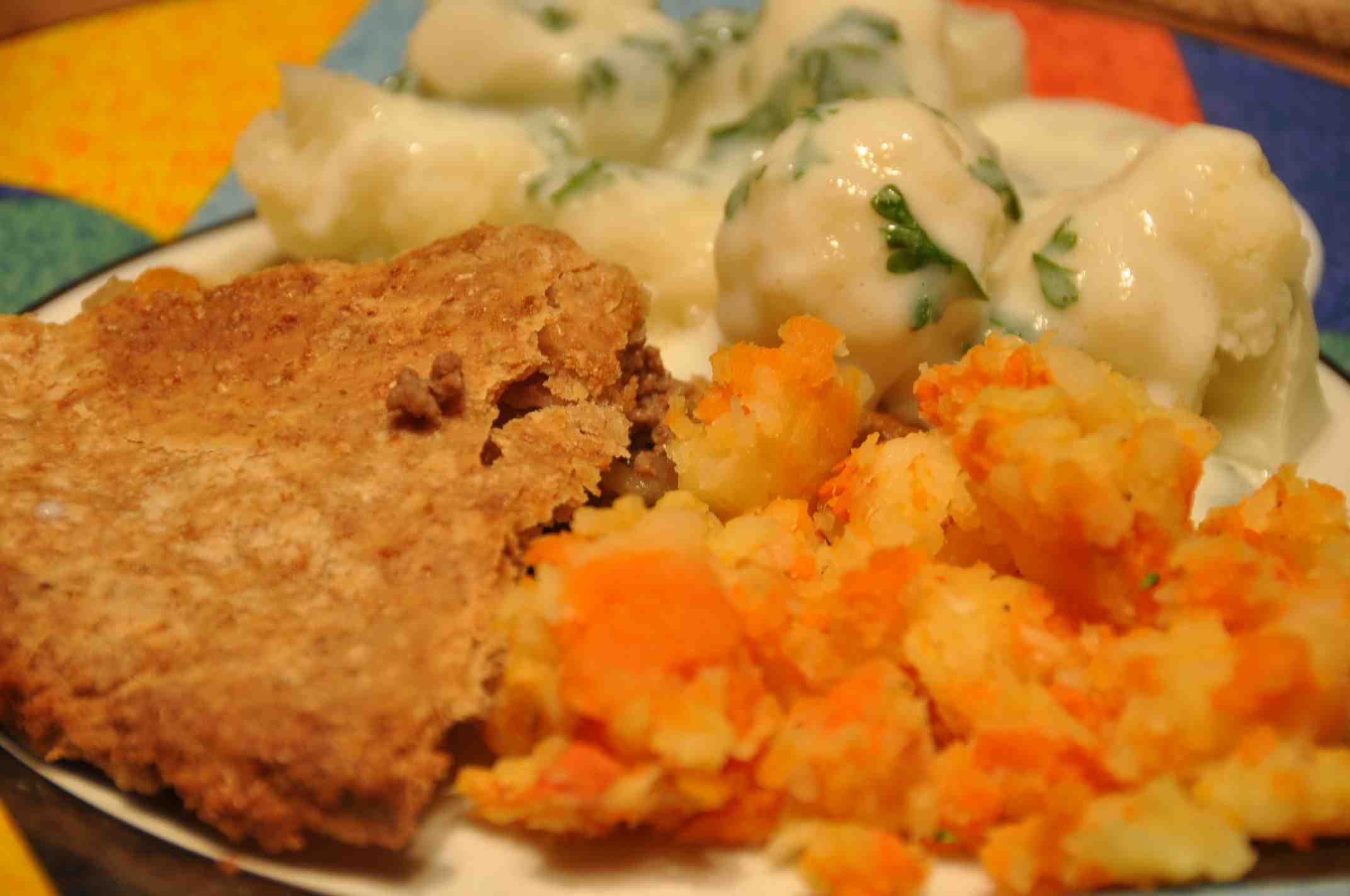 Dinner tonight – bacon turnovers with beetroot and roasted brussels sprouts – was delicious and so satisfying I could only manage one course. The pastry was simple – flour, fat and water – and the filling easy – fried bacon, leeks and mashed potato. Roll the pastry into a circle, put the filling in the centre, fold the pastry over, seal the edges, then put in a hot oven for 30 minutes along with the sprouts which were roasted in the left over bacon fat. This would be a great – and incredibly cheap – recipe for leftovers of any kind.