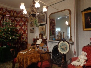 Contrast that with the full explosion of the Victorian room! Although Queen Victoria’s husband, Albert, is credited with introducing the Xmas tree to Britain, apparently Xmas trees had been seen in homes earlier in the century. What surprised me about the tree was the decoration at the top. It’s neither star nor fairy but a union flag! (The tree at the Dennis Severs House – which I blogged about a few days ago- was also topped by a flag.)